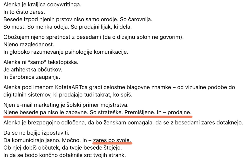 Ko boš imela ponudbo, bo copywriting tista sestavina, ki jo bo naredila privlačno in prodajno uspešno.