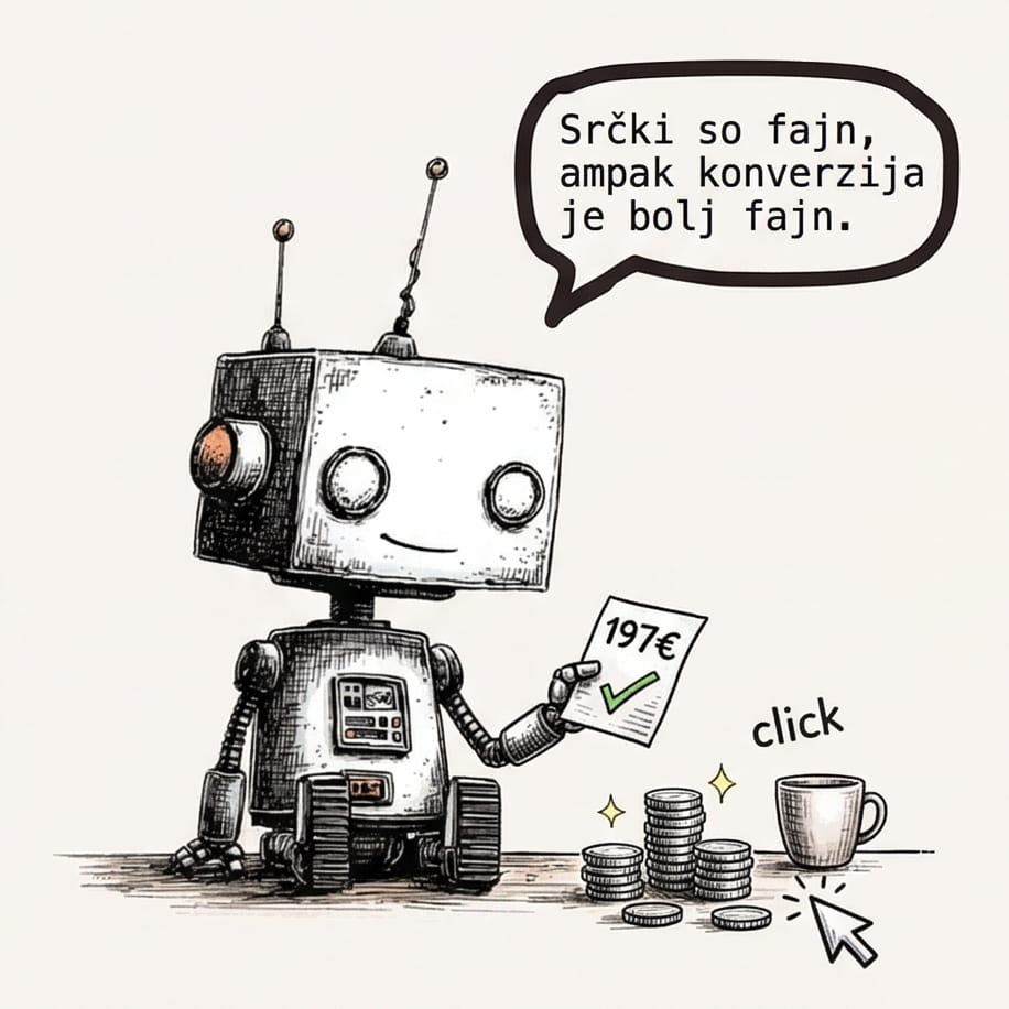 “In mogoče še srčka ♥️,” dodaja Mlinček, moj rahlo depresivni robotek.